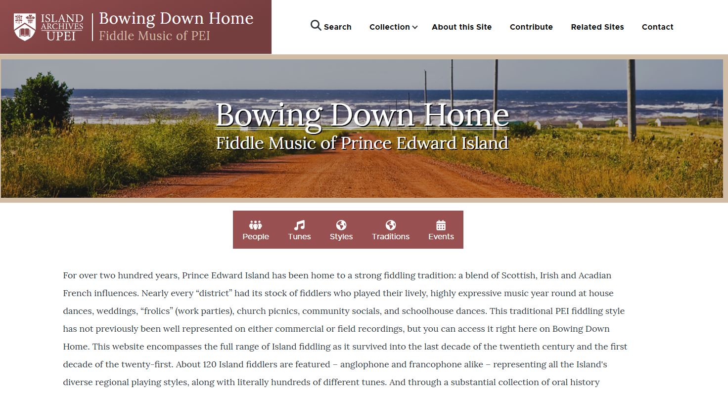 Bowing Down Home is a project to document the fiddling traditions of Prince Edward Island.