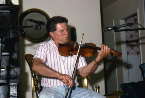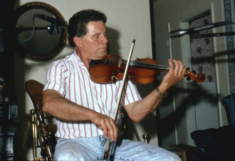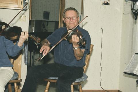 Edward P. Arsenault grew up virtually next door to renowned fiddler Eddy Arsenault, and had that sound continually in his ear while growing up. He only started playing fiddle in his early 30s, however, after being encouraged to do so by his first wife, Marie Gallant Arsenault, who also helped him learn and perfect his initial repertoire. By the early 1990s, he had become an excellent player and – with his wife Marie ably accompanying him on piano – was much in demand to play for local dances. He had also begun composing tunes and one of his works, The Acadian Reel, had spread Island wide. He had also written several other tunes – such as Moonshine Reel, Mussel Breakdown, and Swingin' Mémé – that featured distinctive melodies with unusual turns of phrase. Sadly, Marie passed away in the mid-1990s and for several years Edward neglected his fiddle playing. He has since remarried, relocated to his native St. Chrysostome, and is back composing and playing as well as ever. Some of his new compositions include Looking in the Porch, Pigeon on the Steeple, and Harmony Reel.