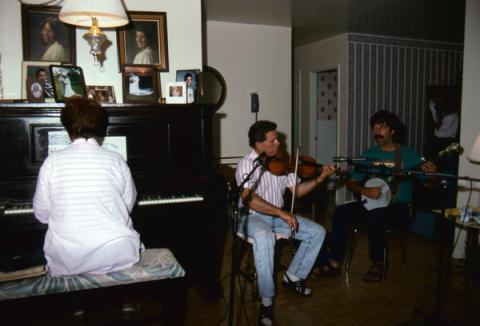 | Music scene in St. Chrysostome | Learned tunes from mother; heard Eddy Arsenault play in community; parents had lots of kitchen parties (soirées musiques); parties at Lent | info and transcript |