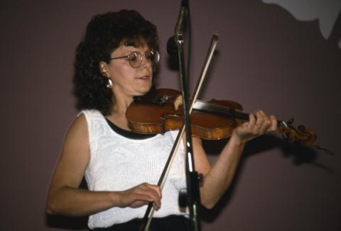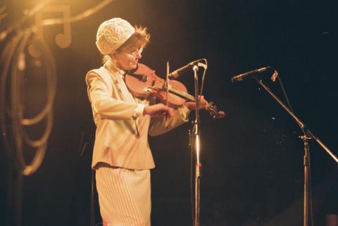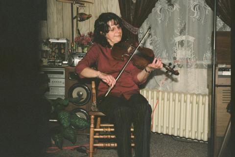 Louise Gallant Arsenault grew up in a large musical family; before her family home got hooked up to electricity in 1967, her family often played music together in the evenings to pass the time. Her father, the fiddler Alyre Gallant, noted her aptitude at a young age and jigged tunes to her until she found them on the fiddle. She was one of the last fiddlers with a traditional Island style to develop in Prince County, and has an extremely independent attitude towards developing and maintaining her own tune versions, or twists.