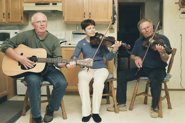Marie Arsenault Livingstone grew up on a farm in St. Chrysostom; renowned fiddler Eddy Arsenault lived just next door. Her parents and many other local families often hosted house parties (known in French as soirées musiques). Although her older brother, fiddler Edward P. Arsenault remembers quite a bit of square dancing at these parties, by the time that Marie came along the square dancing had pretty much ceased and the parties featured mostly fiddling and step-dancing.
