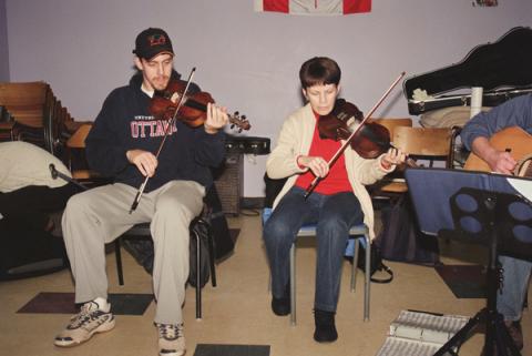 Marie took up fiddle in the early 1990s, when she was about 40 years old. Despite her late start, she plays fluidly and confidently. She also taught herself piano accompaniment (she accompanied her brother Edward on his 2006 recordings), and has done a lot of composing for fiddle. Two of her compositions appear here: Fisherman's Fiddle, and Hermine Gallant's Reel. Two other tunes that she composed – Clamdigger's Reel and Eddy & Armand – can be accessed through the Edward P. Arsenault bio page.