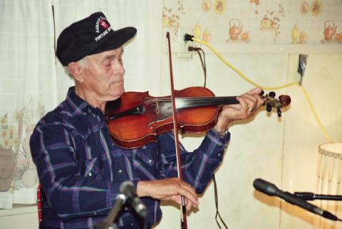Gus started playing fiddle at 8, and was playing for dances by his mid-teens. Over the years, he played for house parties, weddings, and schoolhouse dances throughout northeastern Kings County.