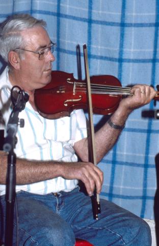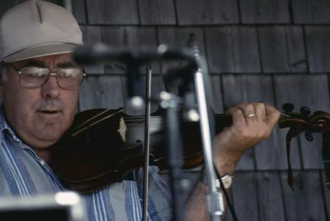 George MacPhee is a strong, elaborate player, and one of the last practitioners of the older Northeast Kings style that predated Cape Breton influence. He comes from a major fiddling family in the region. George's grandfather was noted fiddler Roddy Joe MacPhee of Selkirk, his father Mel Roddy MacPhee played at most of the house parties and dances around Monticello; and most of George's aunts and uncles on the paternal side played, such as Hilda MacPhee MacDonald. What's more, most of George's twelve brothers and sisters played violin (for example, see the bio of Teresa MacPhee Wilson).