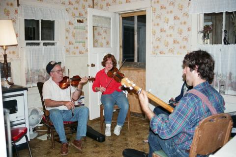 There was plenty of music in George's house when he was growing up. His father played for his own amusement almost every night, and his mother sang and played pump organ by note (via note-reading). People in the community often jigged fiddle tunes as they went about their daily activities. Sometimes a neighbor named Old Jim Carter dropped by and sang Gaelic language puirt-a-beul (fiddle tune melodies sung with nonsense lyrics).