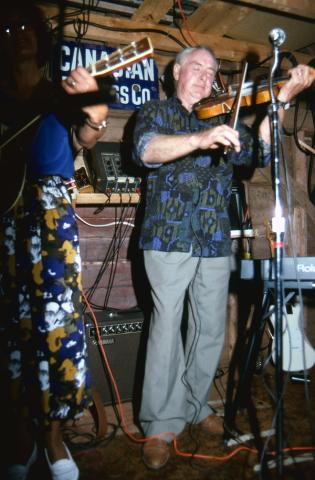 He gave up dance playing for about a decade when he first got married (to guitarist Clara Arsenault McDonald). Then in the 1970s and early 80s he was back at it again, playing for town days, benefit concerts, and commercial square dances at both the New Haven Legion and at an amusement park in Cavendish called Marco Polo Land. He put an end to this hectic schedule in 1983, but for years thereafter he played regularly for informal dance parties in Kellys Cross, the Island community where his ancestors first settled.