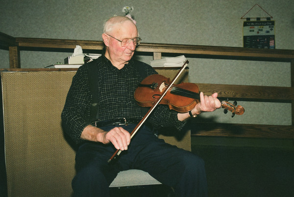Nevertheless, when Reg was about 20 he took a notion to play the fiddle, and – because he found the activity soothing – he taught himself to play by listening to the radio. He never had any interest in playing jigs or reels, but was instead drawn to song melodies, which he worked out by exactly matching the movement of the bow to the syllables of the lyrics (that is, to the note-rhythm) of each verse.