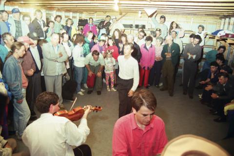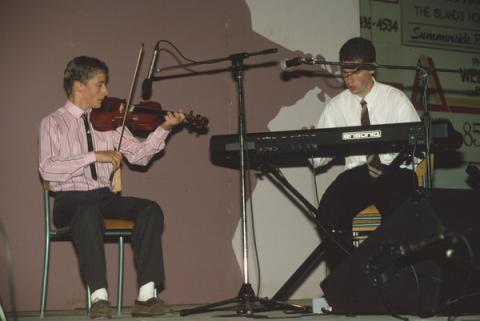 In 1991, Wood was a young step-dancing prodigy who was in the process of rapidly becoming a fiddling prodigy. From an Islanders' viewpoint, two things about Wood stood out at the time. First, he did NOT hale from Northeast Kings County, West Prince County, or some other hotbed of fiddling (he in fact grew up in the environs of Charlottetown). Second -- and even more puzzling -- there was no history of fiddling in his family. Islanders simply couldn't quite make out where all that talent came from.