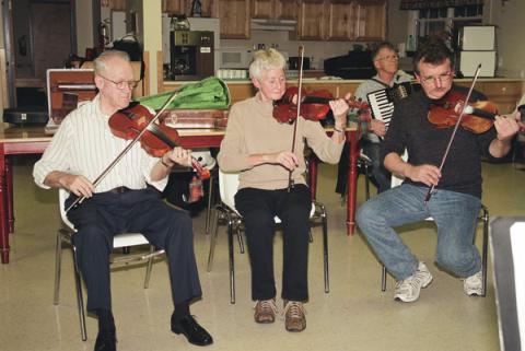 Prince County Fiddlers Meeting: L-R: Leith Thompson, Patsy Bolger, Austin Paynter (accordion), & Robert Gallant - 2006