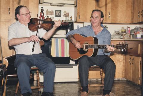 Vincent Doucette is a highly active guitar accompanist and singer from western Prince County; for many years he was the primary accompanist for fiddler Dennis Pitre, and a favored accompanist of both his father Joseph Doucette and his brother Victor Doucette. He grew up in a household with nine brothers and five sisters, and music always formed an important part of daily life. His father Joseph was a noted local fiddler, and most of his siblings played either fiddle guitar. As he recounts, "There was no TV, no phone, and the only means of transportation when I was growing up was horse and wagon; so everybody had their musical instruments in their houses.The people that were more well off had pianos and organs, and of course at our place we had a guitar and a fiddle. So there was always music and everybody used to play music almost every day." On Sunday afterÂnoons the extended family would gather at his paternal grandfather's house in Harper Road and share music making for many hours. And almost every Saturday there would be a house party somewhere in the area, featuring step dancing, square dancing, singing, and other kinds of music making. The most popular style of square dancing in the region was known as the quadrille and flux.