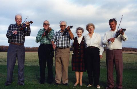 Harry Lecky started fiddling in his teens and was playing for local house parties, hall dances, and weddings by about the age of 20. He learned much of his early repertoire from his maternal uncle Alton MacIsaac. Well-known Prince County fiddler Guy Boulter was a near neighbor; some other fiddlers from his immediate area are Wilf Silliker and Alton Silliker.