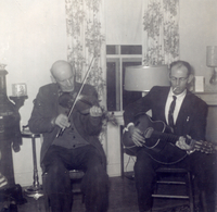 • Abstract:André Arsenault at the fiddle and his son Jean-Pierre Arsenault at guitar. Cap-Egmont, circa 1960.