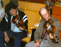 • Abstract:Toussaint Arsenault on the fiddle and his wife Anne Marie at the piano. Summerside, circa 1980. - Emily Blacquiere Collection.