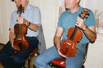 Abstract: Abstract:Neil MacCannell (left) and son Don MacCannell with two violins that they crafted